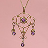 地金は18Kのイエローゴールドで、ピアスの金具部分に「18K」を示すイーグルヘッドの刻印があります。アメジストづかいのリングや、同じくアメジストづかいのJ-113-11やJ-104-7のペンダント、J-115-12のブローチと合せていただくのもおすすめです。
