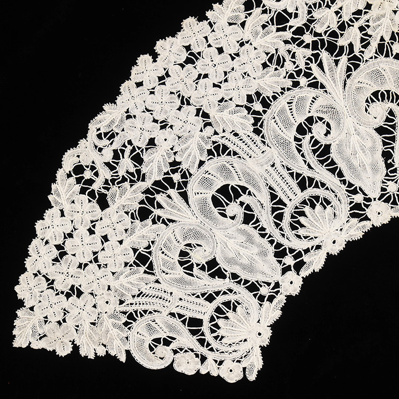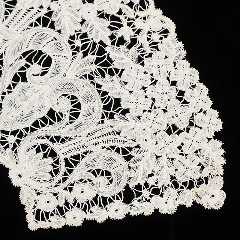 世紀を通じてブリュッセル、特にブルージュで作られました。その「公爵夫人」の名前は、レースの発展に尽くしたベルギー王妃ブラバン公爵夫人マリー・アンリエットにちなんで名付けられたものです。(そのエレガントなレースの名前とは裏腹に、実際の公爵夫人アンリエットは馬に夢中な、活動的な女性だったそうですが…。)