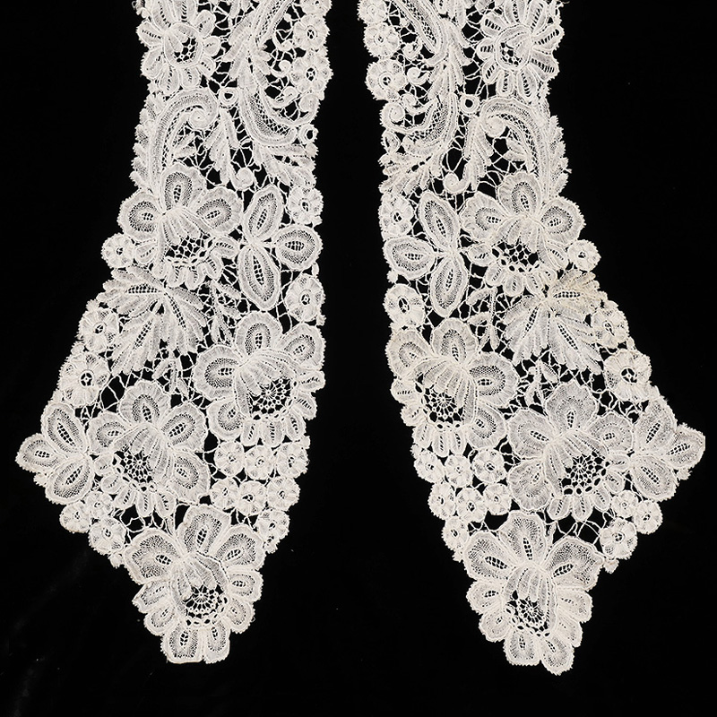 世紀を通じてブリュッセル、特にブルージュで作られました。その「公爵夫人」の名前は、レースの発展に尽くしたベルギー王妃ブラバン公爵夫人マリー・アンリエットにちなんで名付けられたものです。(そのエレガントなレースの名前とは裏腹に、実際の公爵夫人アンリエットは馬に夢中な、活動的な女性だったそうですが…。)