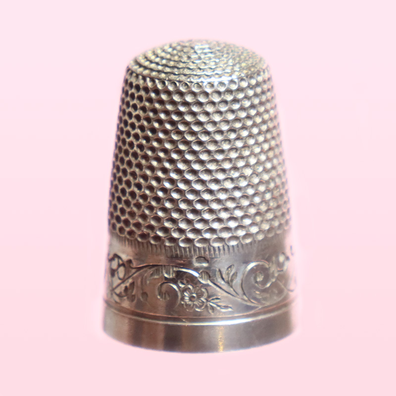 はさみは使いやすいサイズで、実際にお使いいただける非常に切れ味の良い状態。シンブルの内側と、ニードルケースのふたを開けた本体部分に「シルバー」を示すボアの刻印が刻まれています。