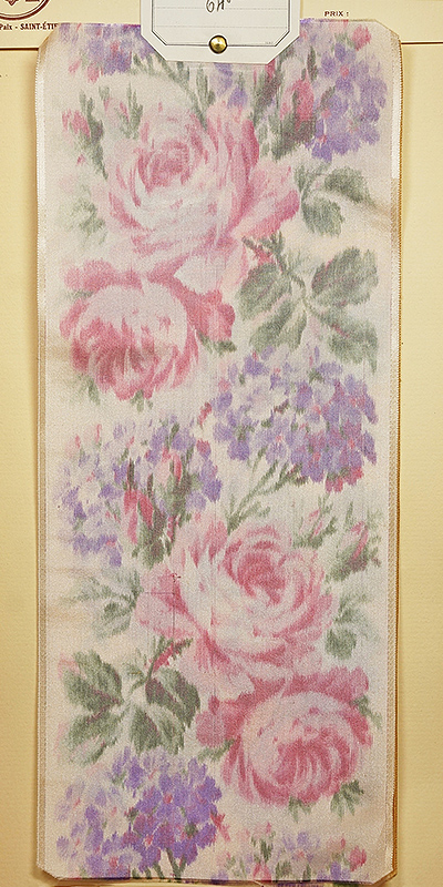 絵画を思わせる美しい薔薇模様の2ピース、ほぐし織りのリボン見本