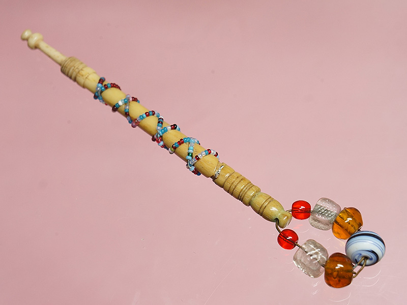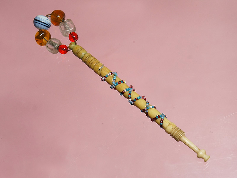 極小のビーズが巻き付けられたボーン製のボビンです。イギリス製のボ