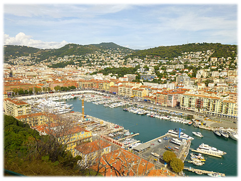 逆側に見えるニース港。こちらから見えるニースの建物もイエローの外壁にオレンジの屋根がカラフルです。